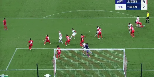 玉昆右侧角球,唐淼后点凌空射门扳回一球,玉昆2-4