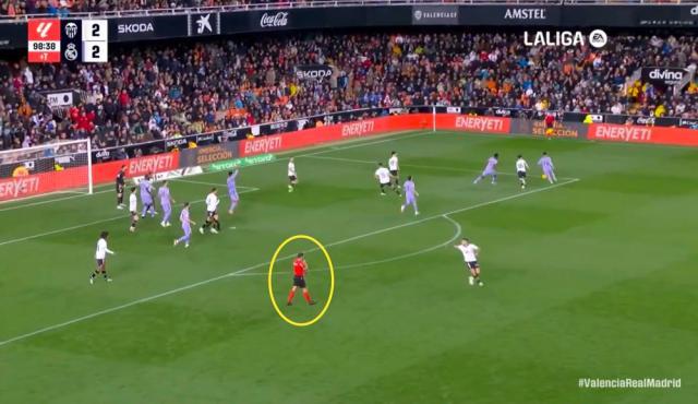 瓦伦西亚憋着劲复仇和洗刷名誉,皇马这边等到贝林厄姆伤愈归队,但气势始终差了一截。上半场第27到第30分钟的3分钟内,皇马后场连续失误被抢断,失球接踵而至。卡瓦哈尔的乌龙回传或可归咎于太放松,维尼修斯在自家底线附近被断球让人很难评价,他一般不会回防到那么深,更少见在危险区域带球。能说这个失误是因为他过分积极勤勉造成的反作用吗?